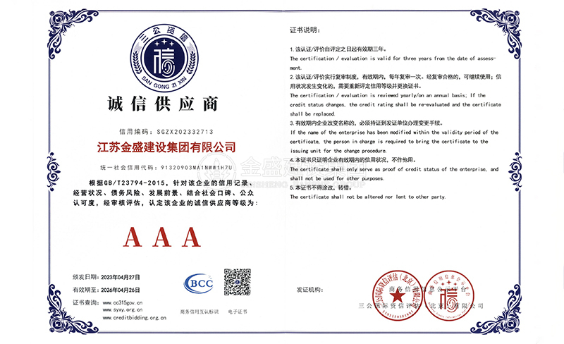 • 3A級(jí)資信等級(jí)證書(shū)